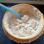Tři sklenice kefíru přelijte do překapávací mísy a nechte aspoň 24 hodin překapat. Je dobré během té doby aspoň jednou, lépe dvakrát, seškrábnout usazený kefír z plátna a vylít oddělenou syrovátku z pod plátna.