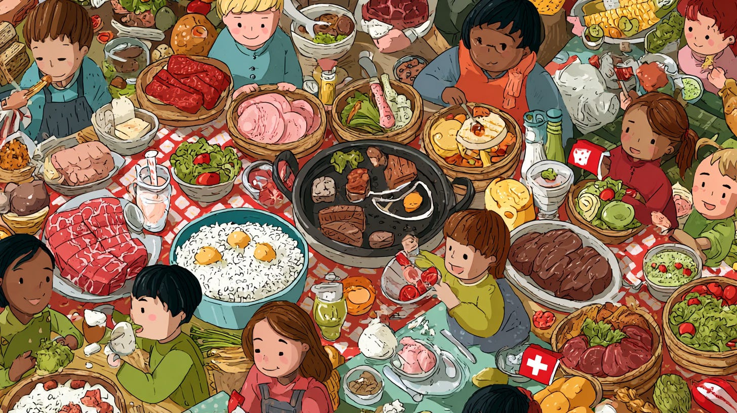 Švýcarská strava je založena na mléčných výrobcích, mase, vejcích, bramborách, zelenině, ovoci a fermentovaných potravinách. Živiny z živočišných potravin jsou základ. Ultra zpracované potraviny jsou až na druhém místě.