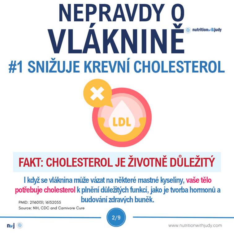 Ačkoli studie ukazují, že vysoký příjem vlákniny může snižovat hladinu cholesterolu, my tvrdíme, že to není žádný přínos. Proč naše tělo produkuje většinu cholesterolu, když se musíme snažit ho snižovat? Nízká hladina cholesterolu je ve skutečnosti spojena s úmrtností na mrtvici, srdeční choroby a rakovinu, s depresí a vyšším rizikem sebevraždy a se zhoršenou funkcí mozku. Tělo cholesterol potřebuje – v tomto případě není třeba žádných zásahů.