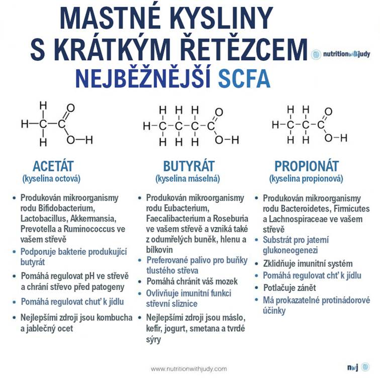 Říká se, že potřebujeme vlákninu, aby naše srdce a střeva měla dostatek SCFA. SCFA jsou podskupinou mastných kyselin, které se vytvářejí ve střevech během fermentace polysacharidů. SCFA se rozkládají v tlustém střevě a poskytují srdci a střevům podporu v podobě butyrátu (kyselina máselná), propionátu (kyselina propionová) a acetátu (kyselina octová).